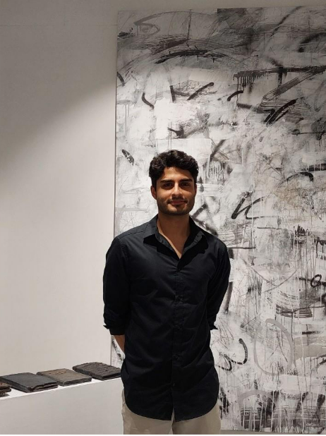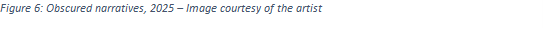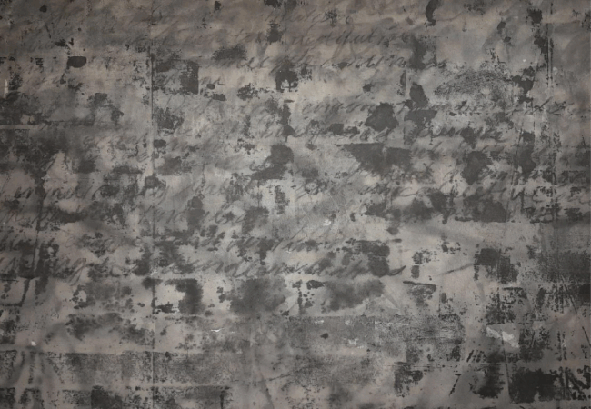 The idea of erasure and degradation continues in his thesis work at the National College of Arts (NCA). In the diptych titled “Obscured Narratives”, he interrogates how history is recorded, manipulated, and eventually forgotten. Charcoal-written text appears across dark, ashen grey backgrounds, surrounded by scuffs, scratches, and textures in shades of black. The script is indecipherable, slowly fading or being buried under visual noise. What remains is not a message, but the haunting suggestion of one, a visual meditation on the fragility of memory and the erosion of language.