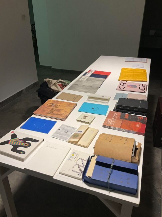 Within this shifting ground, The Kurachee Reading Room, created by Sophia Balagamwala, finds a new home. Conceived as a nomadic and evolving collection, the Reading Room brings together artists’ books, zines, catalogues, and experimental publications that often circulate on the margins of institutional archives. Rather than functioning as a static library, it invites slow engagement, reading as an embodied, social, and political act. Its presence within Darham / Marham strengthens a commitment to publishing as a form of thinking-with: allowing texts to be read alongside conversations, silences, and shared time.