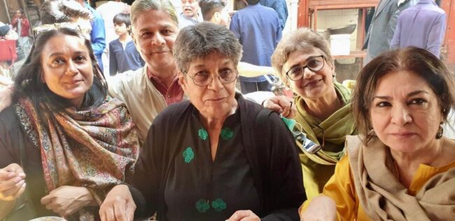 Qudsia with Qasim Jafri, Nighat Ali, Fauzia Qureshi, and Ghazala Rehman after installing plaques for the Sangat Lahore project, a group of citizens giving tribute to the history and legacy of Lahore, 2023