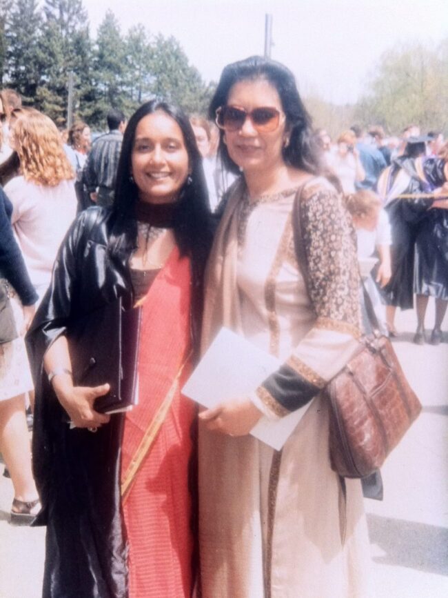 Qudsia at her graduation ceremony at Alfred University, New York, with her mother-in-law, Tahira Ahmed Nayyar, 1999.