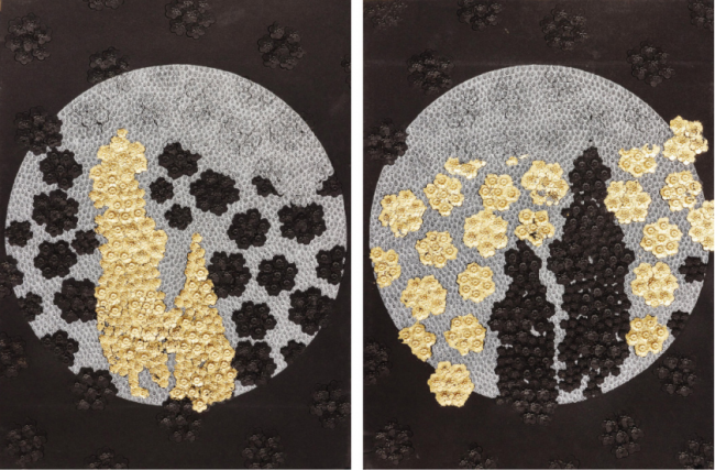 Regarding Abid Aslams’ works, they are technically combinations of non-canonical materials, including gels and perforated grounds. The curatorial statement highlights that contemporary miniature practice has always been part of Abid’s interest, not only in terms of old traditional art but also rich cultural history. His works depict tales from the Mughal era, showcasing the ruling kings, their activities, memorable events, and affection towards their people and loved ones.