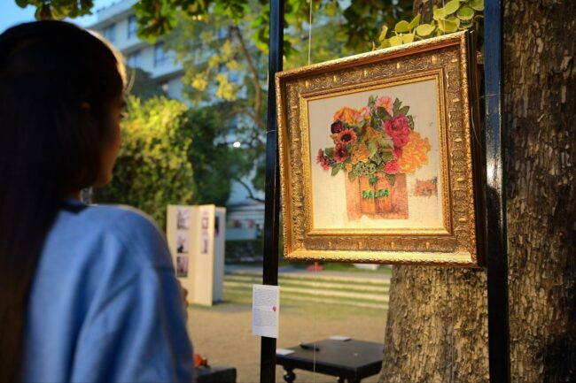 Aima Abbas’s work examines the lotus flower and its symbolism within South Asian culture, detailing how its meanings have evolved. Originally regarded as a sacred symbol of divine presence, it has shifted into a broader cultural icon, now associated with resilience, beauty, and identity in contemporary South Asia. Whereas Jawwad Hussain examines the fading of color, particularly red, which traditionally represents passion, longing, and love in the rose flower. The discussion highlights that what remains is evidence of loss and evolving desires. The imagery of a wilting rose symbolizes the decline of love, suggesting an inability to feel this emotion due to life’s experiences. The transition from passion to indifference is presented as influenced by both nature and nurture, questioning whether love is innate or learned. This fading color metaphor indicates that as experiences accumulate, the vibrancy of initial feelings diminishes. Still, like the rose, the human heart retains a memory of its original color even as it fades.