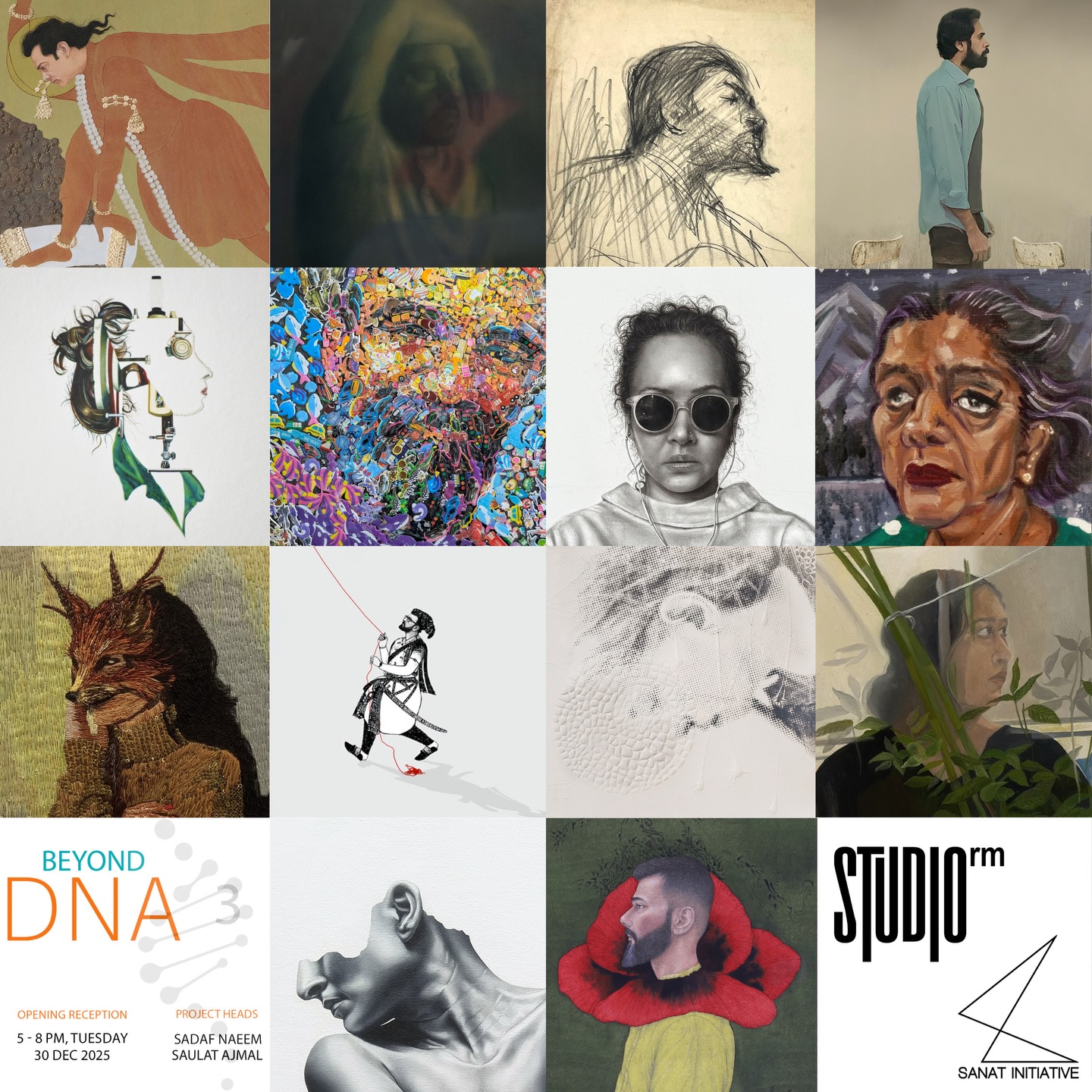 When the language of DNA is transferred into the realm of art, it sheds this objectivity and rigidity; this is the site of inquiry in Beyond DNA 3. Opened on 30th December, 2025, at Sanat Initiative, Karachi, curated by Studio RM under the project leadership of Sadaf Naeem and Saulat Ajmal, Beyond DNA 3 marks the third iteration of a long-term curatorial inquiry. By bringing the works of 14 artists from all over Pakistan, the exhibition proposes DNA not merely as a scientific fact but as a way of thinking about ethics, philosophy and aesthetics.