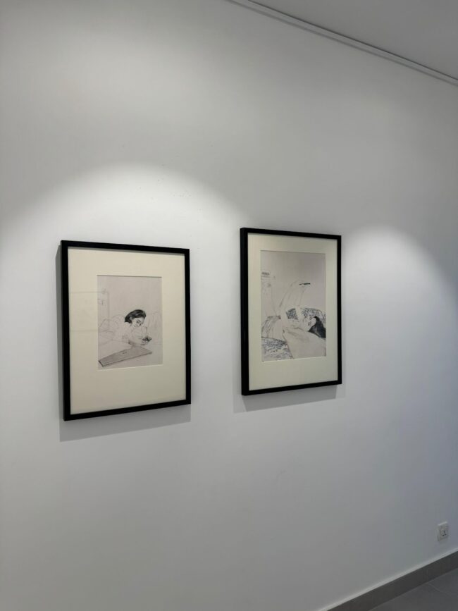 Fatima Shah confronted the body, particularly the female body, as a site of intimacy and vulnerability. In works like Blue Light Baby and Doomscrolling, she layered traditional print aesthetics with the glow of digital culture, producing images that oscillated between tenderness and critique. Shah’s exploration of “girlhood” tapped into Gen Z subcultures, yet it resisted flattening these experiences into aesthetics alone. Instead, her reframing of voyeurism through a female gaze carved out a space where the politics of looking were unsettled. Vulnerability was not weakness here; it was a form of insistence, a way of holding onto the everyday in its most unvarnished state.
